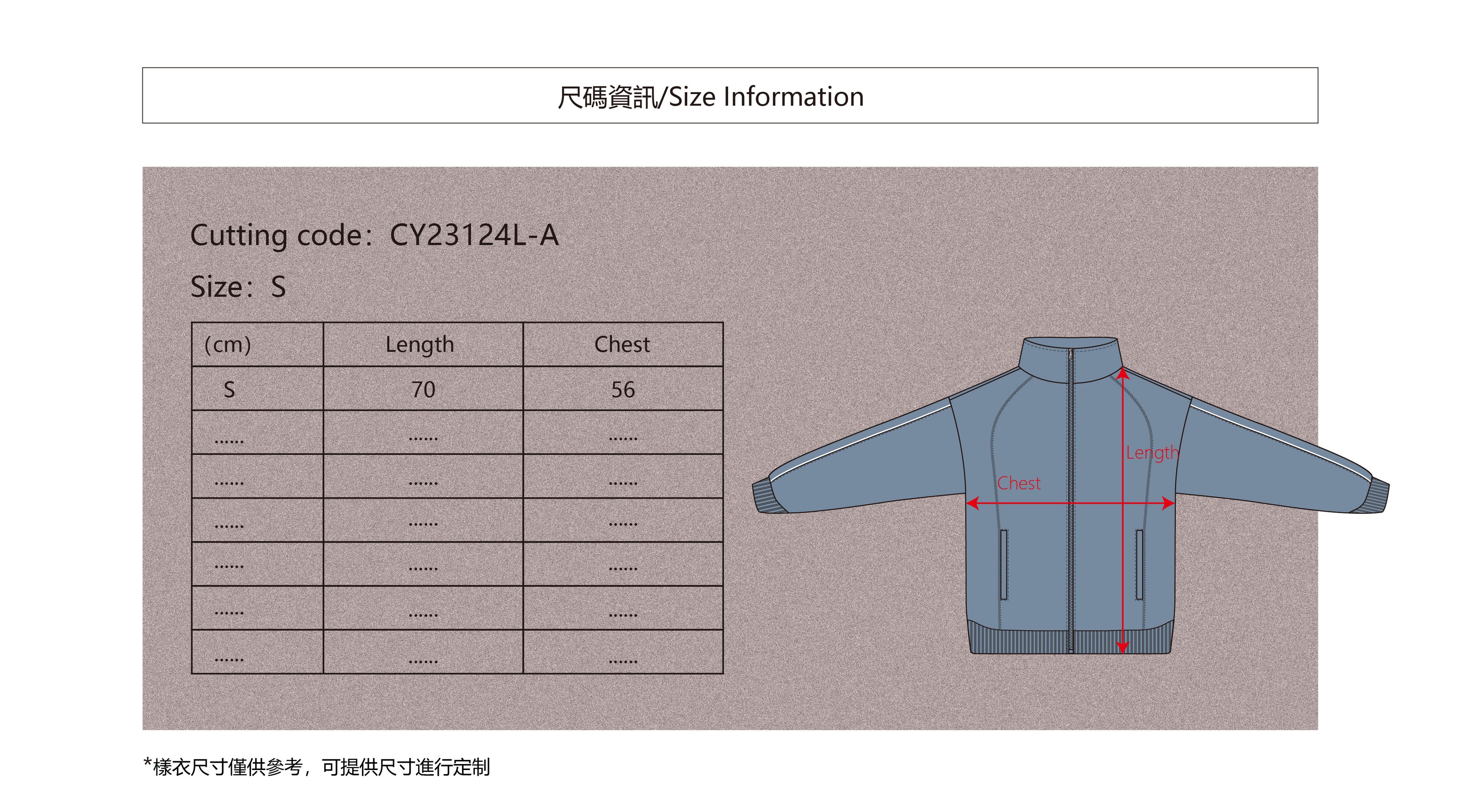 選擇一款您喜歡的款式然後記下 Cutting code 和您所需要的Size