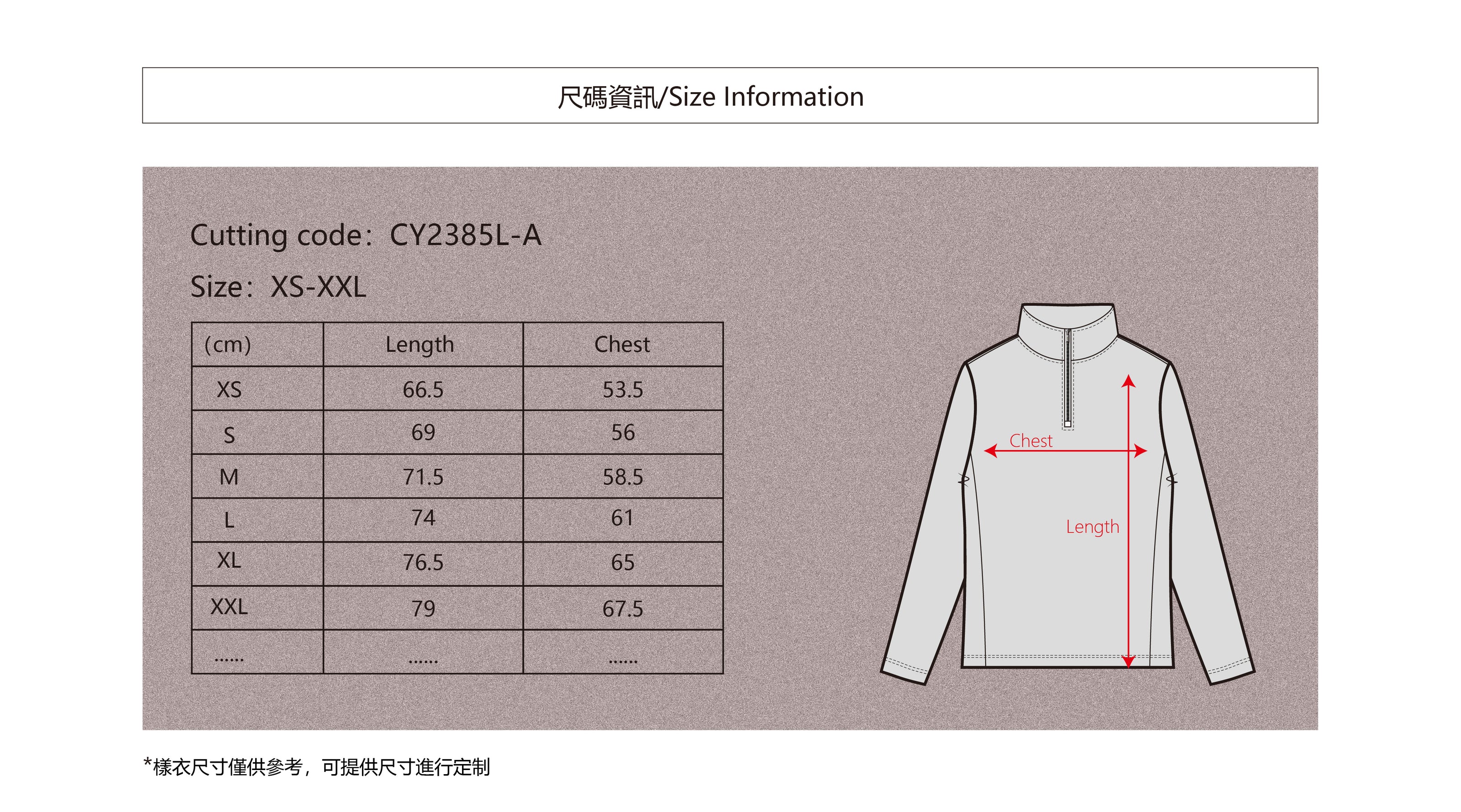 - 合體版型/Fitted size.