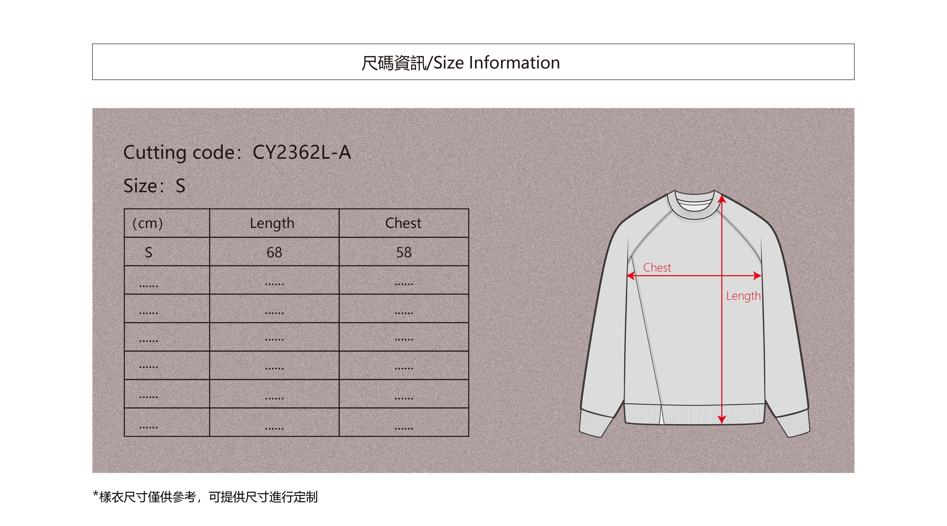 選擇一款您喜歡的款式然後記下 Cutting code 和您所需要的Size